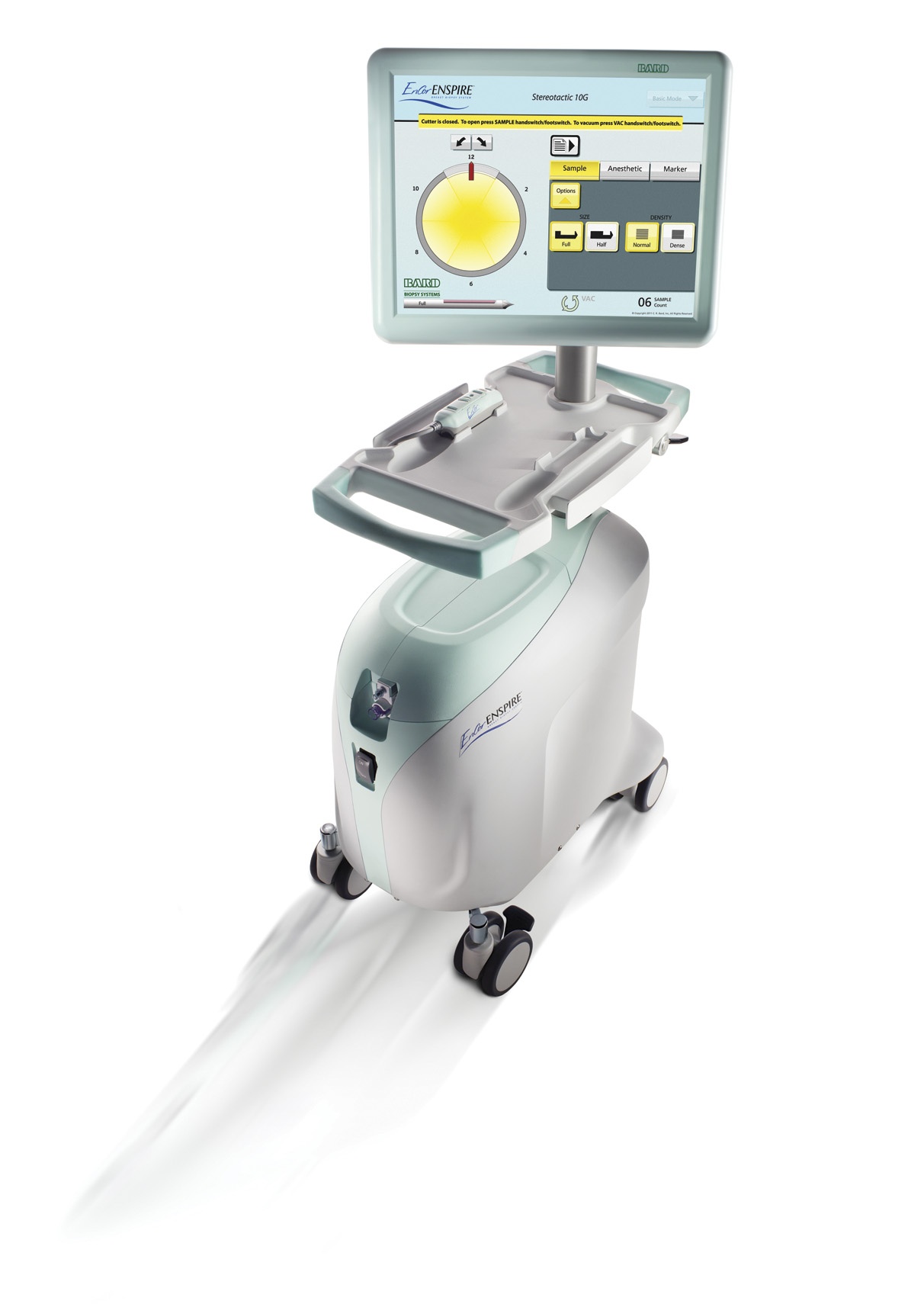 Sistema inteligente de biópsia mamária a vácuo com interface touchscreen e foco em eficiência e conforto.